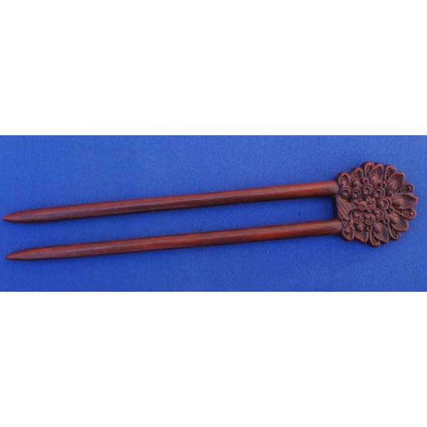 Carved Hairpin, red-brown Pao Rosa wood, lacquered, length 17 cm