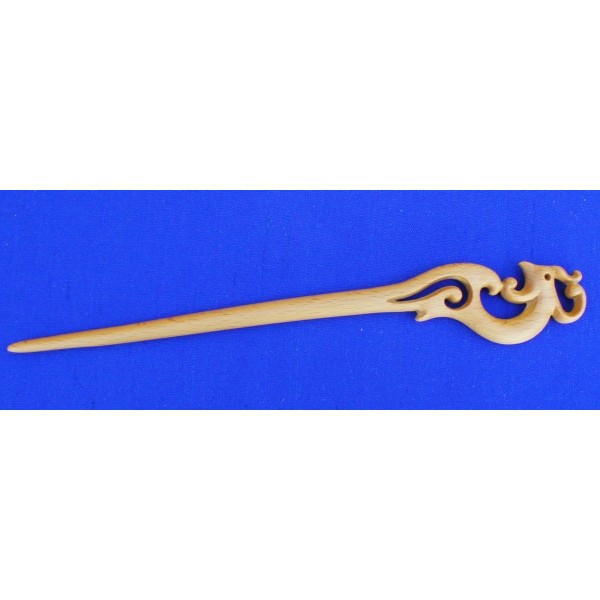 Carved Hairpin, yellow-brown beechwood, lacquered, length 18 cm