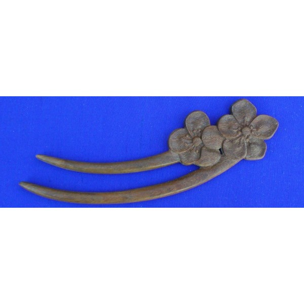Carved Hair fork made of Palo Santo wood, waxed, length 17 cm