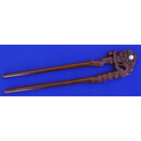 Carved Hairpin, red-brown Pao Rosa wood, lacquered, length 16 cm
