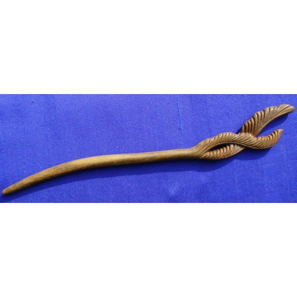Carved Hairpin, thin lacquered Vera wood, length 19 cm