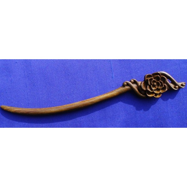 Carved Hairpin, thin lacquered Vera wood, length 18 cm