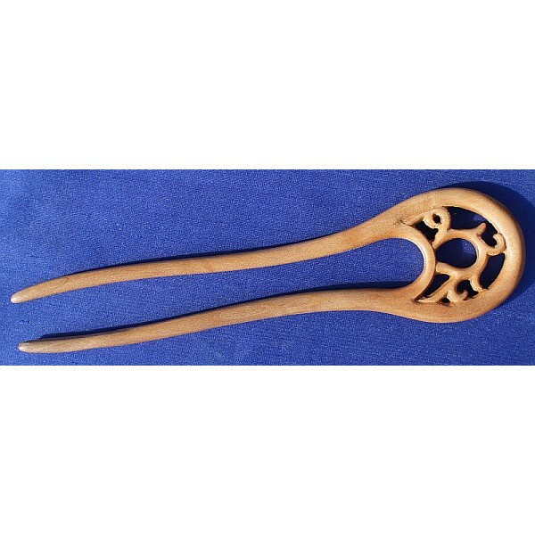 Handmade Hairpin, red-brown peachwood, waxed, length 15 cm