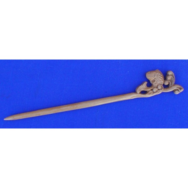Handmade Hairpin, red-brown peachwood, lacquered, length 18.5 cm