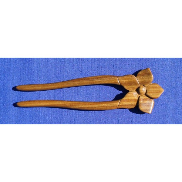 Carved Hair fork made of Palo Santo wood, lacquered, length 13.5 cm