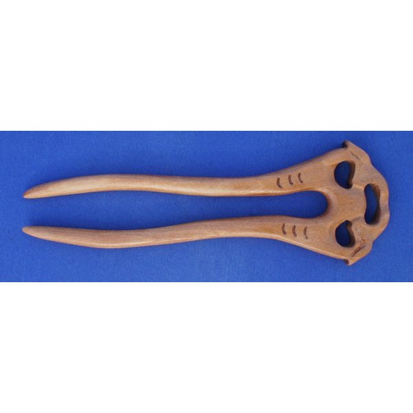Handmade Hairpin, red-brown peachwood, lacquered, length 15 cm