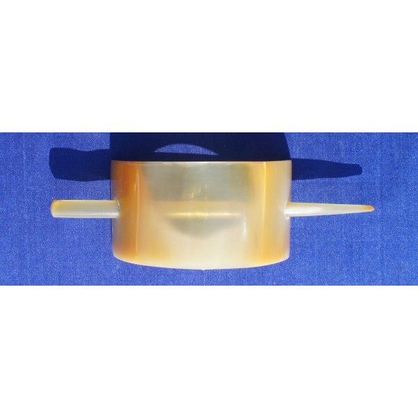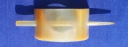 From India: handmade barrette of bright coloured and polished ox horn (colour and pattern can differ caused by natural material), length (without pin): ~ 7 cm, width: ~4 cm (Pin is about 13 cm long)