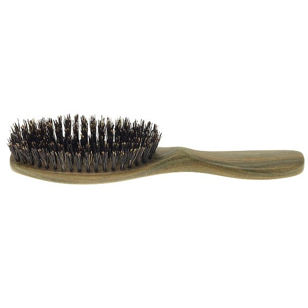 Hairbrush made of green-brown Vera wood with pig bristle sticked in, length: 21 cm (wood brighter than on picture)