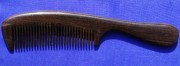 Handle comb with fine teeth made of dark brown Black Chakate, slightly lacquered, length 21 cm, teeth gap 1.5 mm.