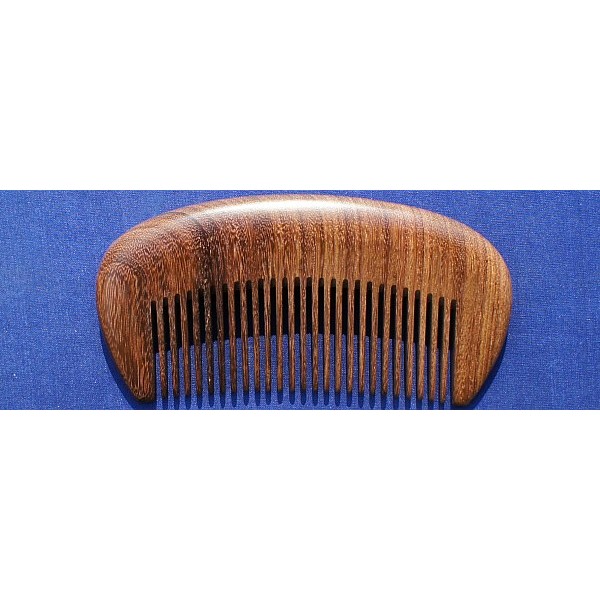 Pocket comb with fine teeth made of hard and durable brown Panga Panga, length 11.6 cm, teeth gap 1.7 mm.