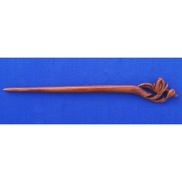 Carved Hairpin made of red-brown pao rosa wood, length 17.5 cm