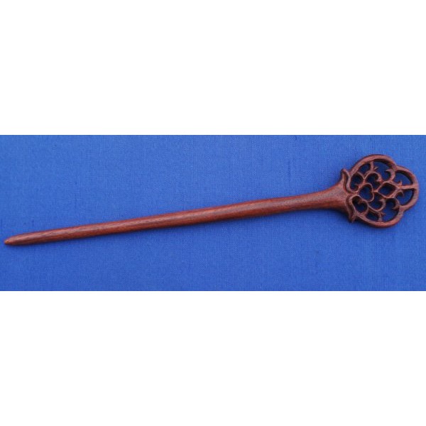 Carved Hairpin made of red-brown pao rosa wood, length 18 cm