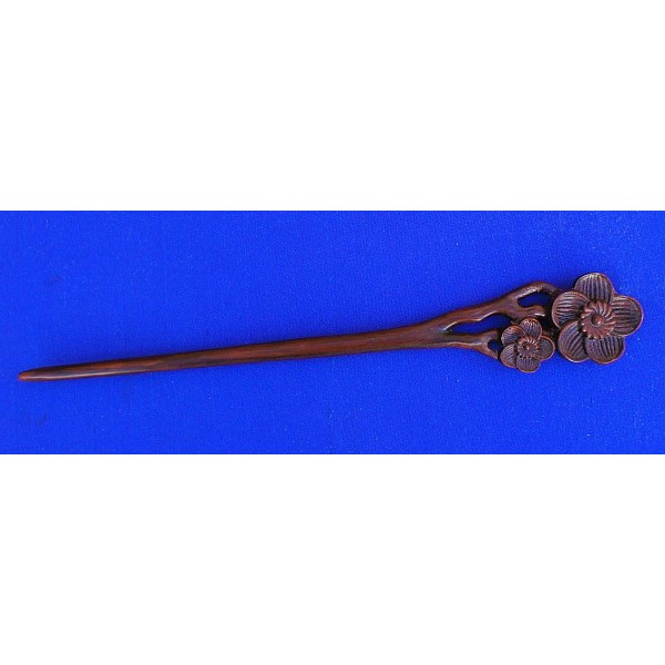 Carved Hairpin made of red-brown pao rosa wood, lightly lacquered, length 20 cm