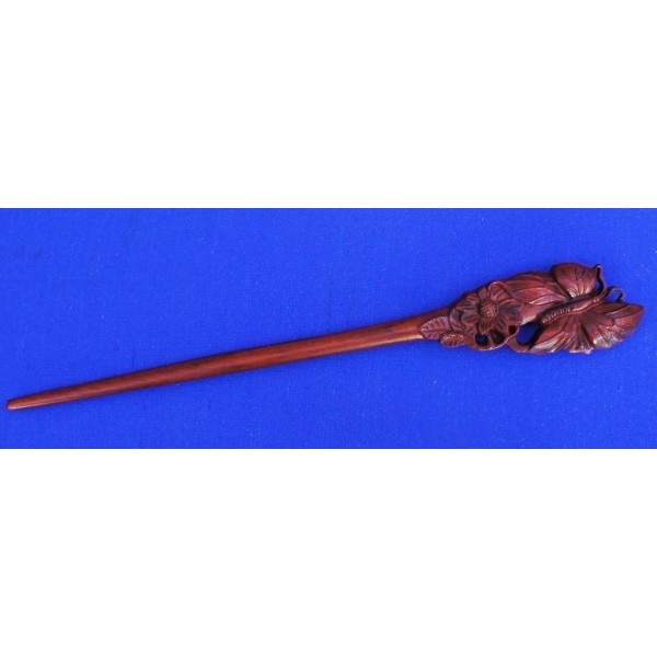 Carved Hairpin made of red-brown pao rosa wood, lightly lacquered, length 20 cm